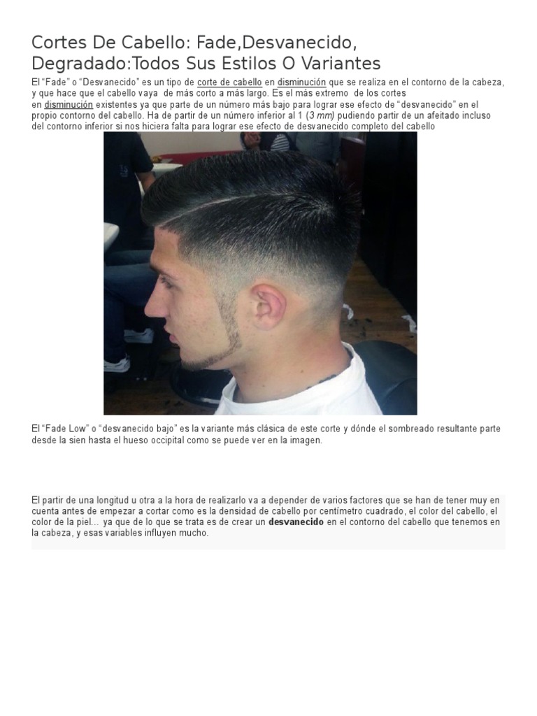 El fade o desvanecido es un tipo de corte de pelo en disminucion que se realiza en el contorno de la cabeza y que hace que el pelo vaya de mas corto a mas largo.